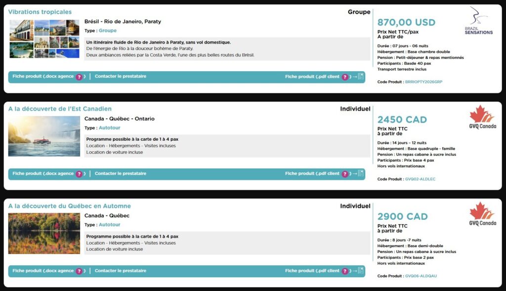 ✔ Préparez des propositions plus ciblées grâce à une vision claire des offres et partenaires par destination.