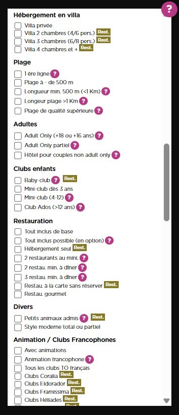 - Un moteur séjours avec plus de 150 critères de recherche